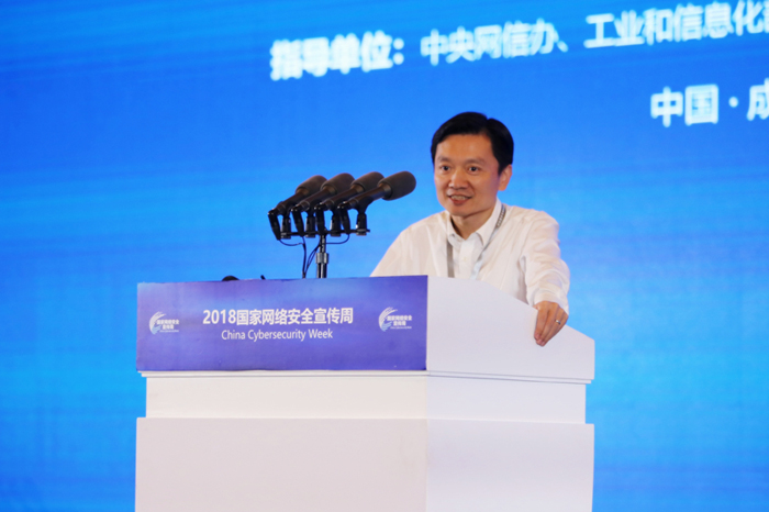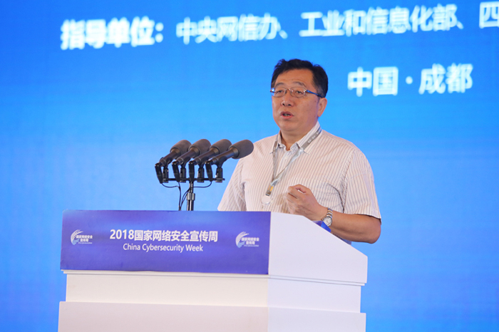 图为中国电子科技网络信息安全公司副总经理,中国电子科技集团公司第三十研究所所长卿昱就《网络安全开启全民密码时代》发表演讲。中国网信网 李旭 摄