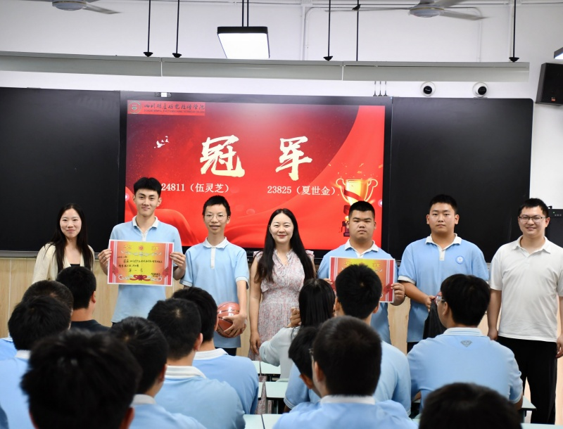 图:智能制造系黄周婷主任为冠军队伍23825班、24811班颁奖
