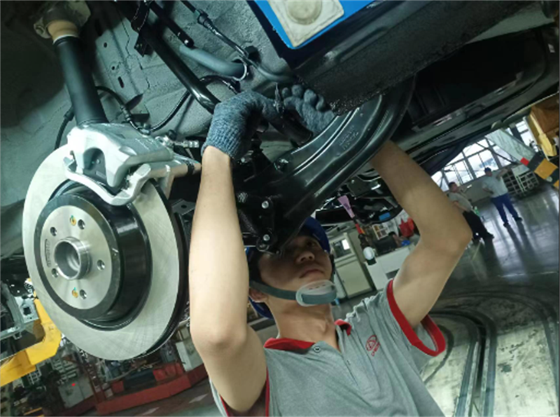 在“捷途”汽车生产线上工作的汽车工程系学子